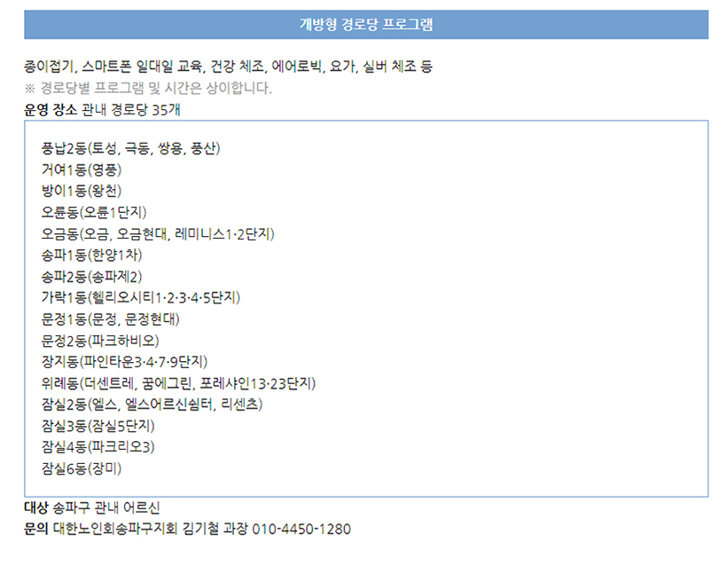 공지 '개방형 경로당 프로그램'
