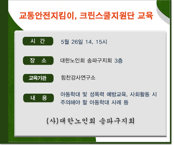 노인일자리 교통안전지킴이, 크린스쿨지원단 교육