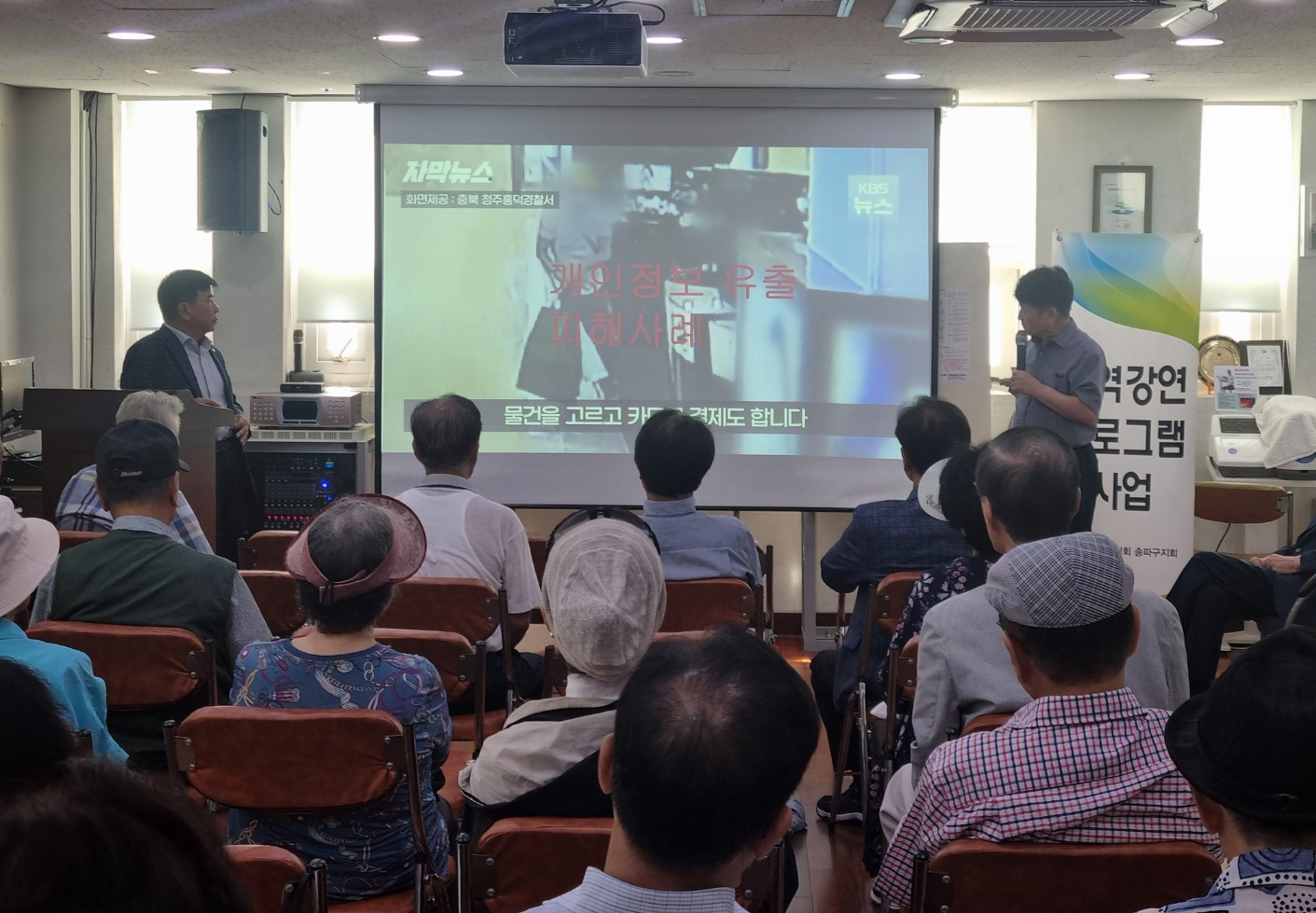 본지회는 지난 8월 29일 서울시 특화사업으로 개방형경로당 '광역강연프로그램(거점경로당)' 과 '건강 걷기프로그램' 을 실시하였다. 송파동, 석촌동, 삼전동, 문정동, 방이동, 가락동 일부 35개소 경로당 회장이 한자리에 모여서 '2025년 회계 및 정산교육'과 ‘노인학대 예방 교육’ , '보이스피싱교육', '폭력예방교육' 과 건강걷기대회에 참석하였다.![]()