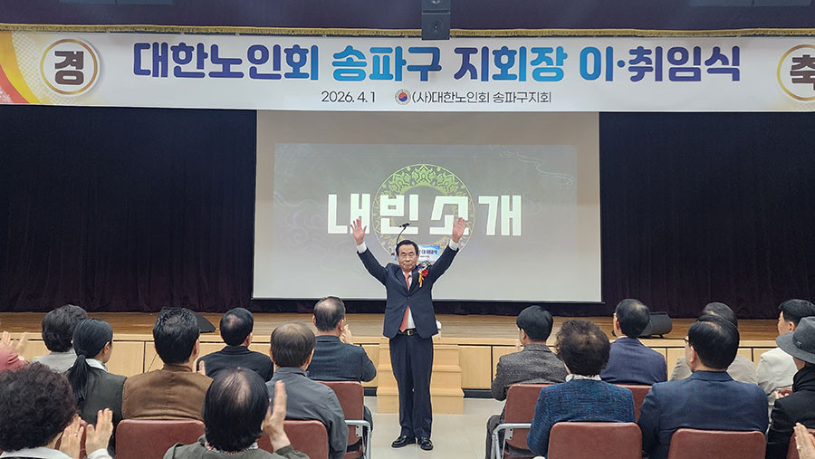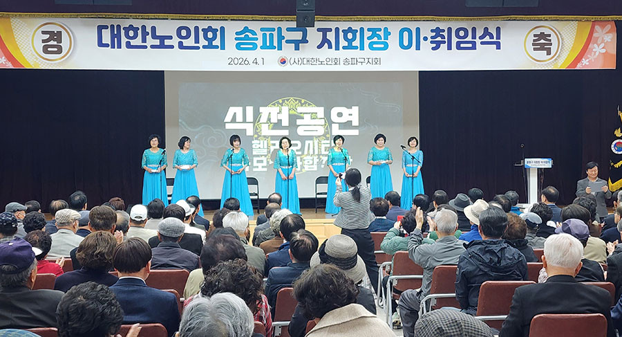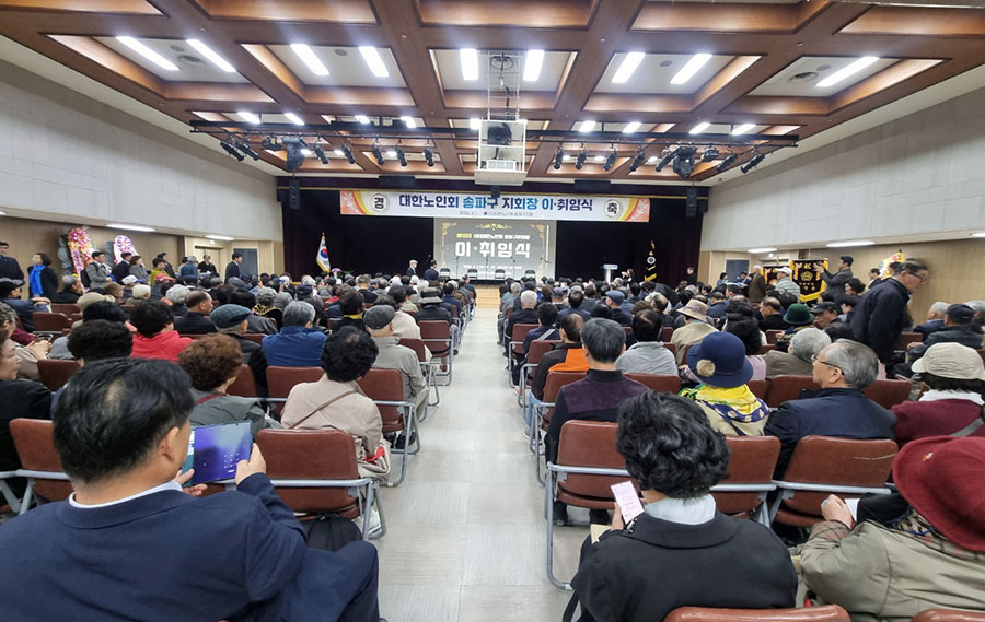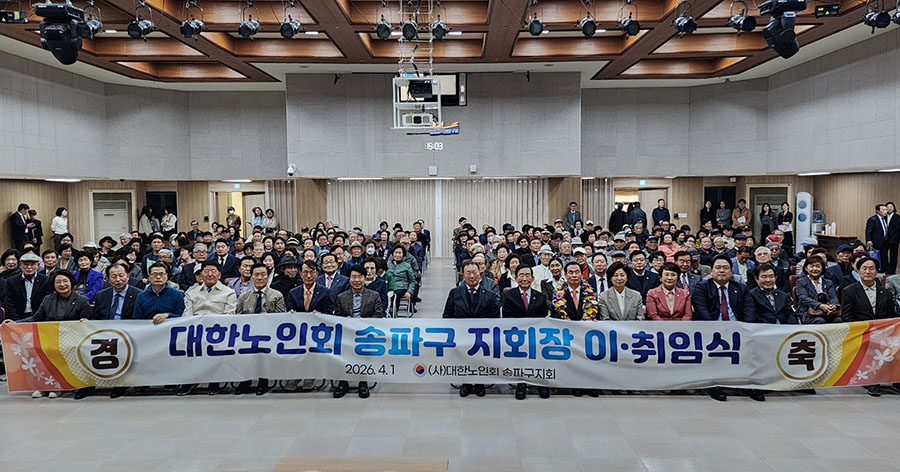 지난 4월 1일 송파구청 4층 대강당에서 ' 대한노인회 송파구 지회장 이·취임식'이 진행되었다. 이날 행사는 제11대 윤병오 지회장이 이임하고, 제12대 박성영 지회장이 취임하는 행사이다. 이날 행사에는 고광선 서울시연합회 회장을 비롯해, 송파구의회 이혜숙의장, 남인순국회의원 등 주요내빈들과 송파구경로당회장 등 250명이 참석한 가운데 성대하게 진행되었다. 식전행사로 헬리오시티 하모니카 합주단(헬리오시티2단지 경로당)의 공연을 시작으로 윤병오전지회장에게 공로패 수여 및 전별금이 전달 되었다. 또 박성영지회장 취임선사와 취임사가 진행되었으며, 송파구의회 이혜숙의장, 남인순국회의원등의 축사가 이어졌다.![]()
