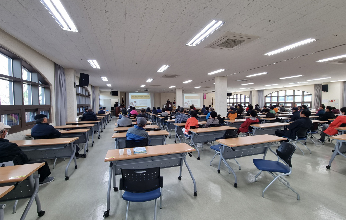지난 4월 12~13일 전북 무주연수원에서 경로당 회장 30명이 ' 2023년 노인지도자교육' 에 참석했다. 12일에는 입교식 및 오리엔테이션, 인문학, 건강관리, 레크리에이션 교육과 13일에는 건강체조, 리더십, 수료식 및 기념촬영이 진행되었다.![]()