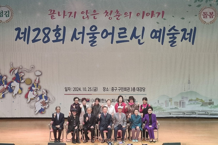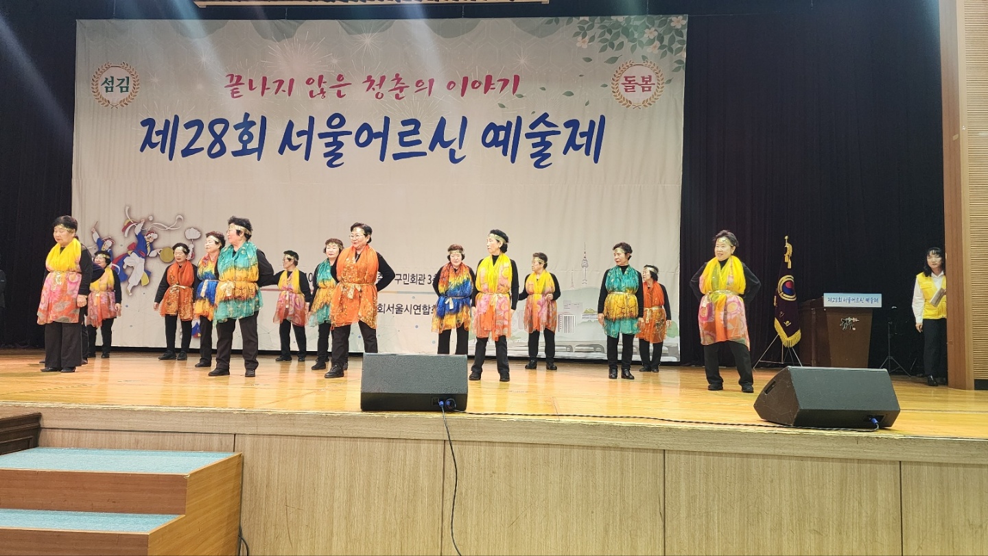 대한노인회 서울시연합회(회장 고광선)가 주최한 ‘제28회 서울어르신 예술제’가 지난 10월 25일 중구구민회관에서 개최되었다. 고광선 연합회장, 지회장, 노인대학장 등 500여명이 참석했으며, 본지회는 이정현의 '와'을 선보여, 아낌없는 박수를 받았다![]()