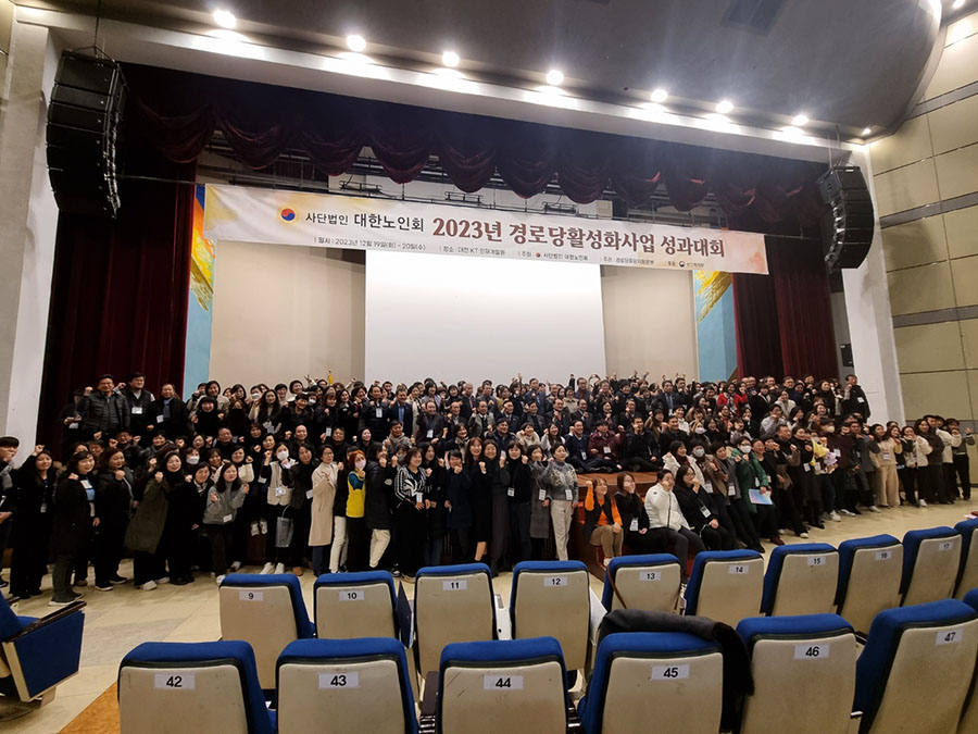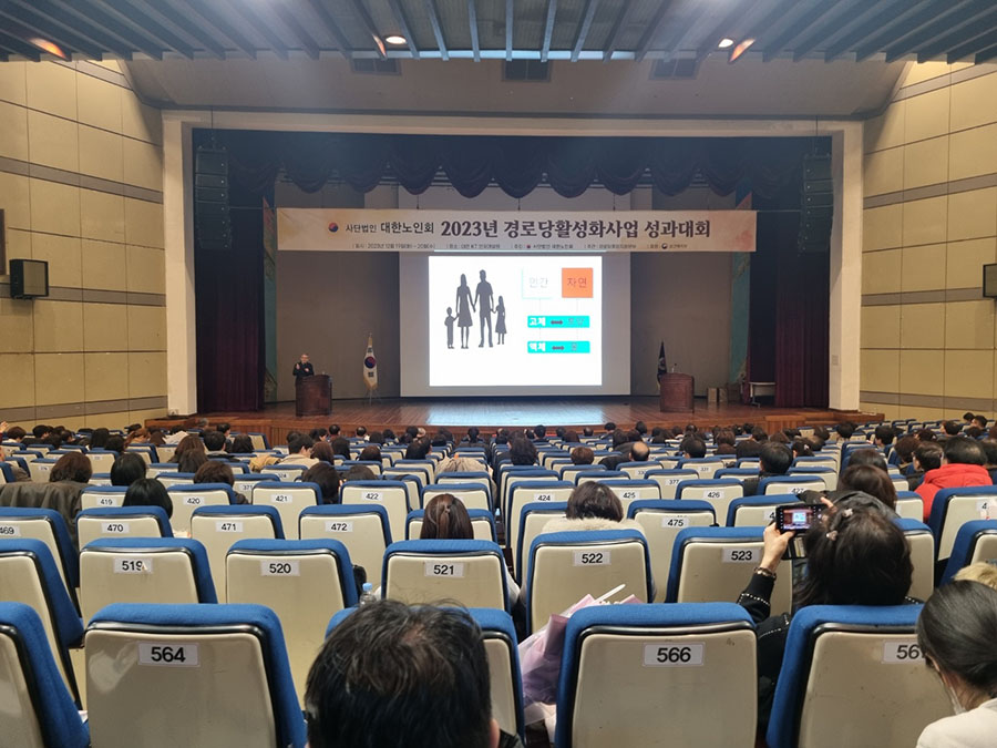 (사)대한노인회 중앙회(김호일회장)가 12월 19일, 20일 이틀간 대전 KT인재개발원에서 ‘2023년 경로당활성화사업 성과대회’를 개최했다. 대회 첫날에는 우수기관‧직원 시상식 및 정년 퇴직자 공로패 수여되었다. 본지회는 경로당활성화 사업 지회 우수기관으로 선정되어 수상했다.