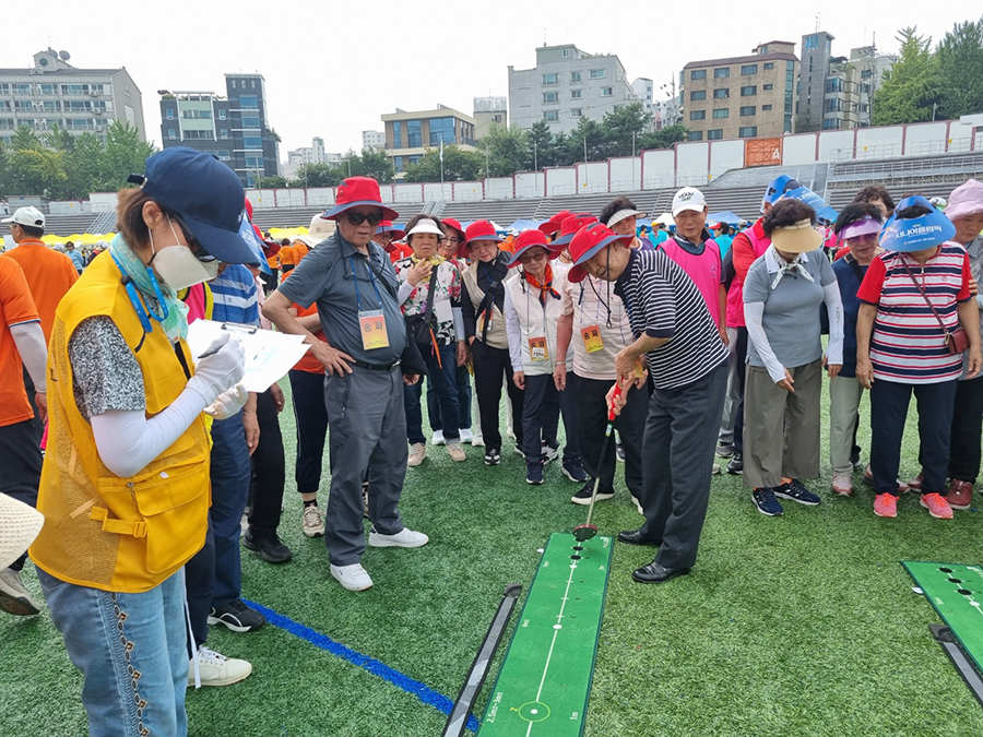 송파구지회는 공굴리기, 파크골프, 한궁, 애드벌룬 튕기기, 하늘높이 슛에 참석했다. 한궁대회에 참가한 벌말(회장 이상희) 경로당에서 준우승을 차지했다. ![]()