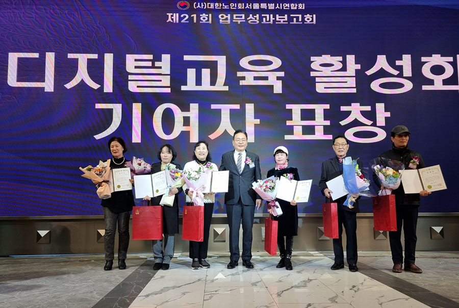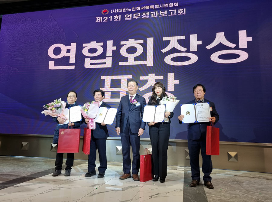 (사)대한노인회 서울연합회(회장 고광선)는 12월 22일 마포구 케이터틀 컨벤션홀에서 제21회 업무성과보고회를 개최했다. 이날 행사에는 오세훈 서울시장을 대신해 조미숙 서울시 복지기획관, 조희연 서울시교육감, 서울시의회 우형찬 부의장, 강석주 보건복지위원장, 대한노인회 김호일 중앙회장, 고광선 서울연합회장, 연합회 임원‧고문, 서울 지역 지회장, 노인대학장 등이 참석했다. ![]()