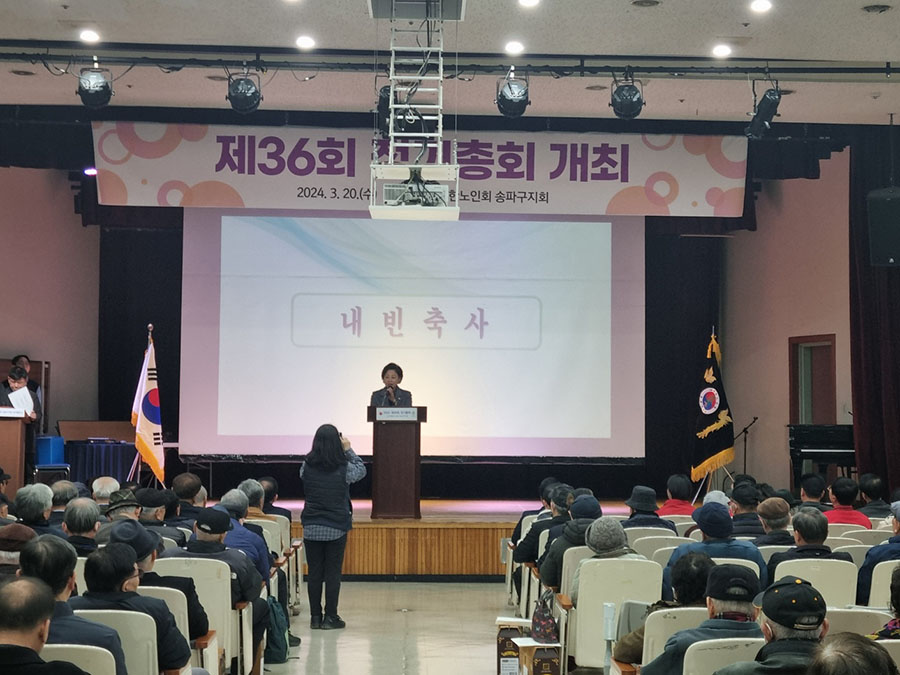 본 지회는 지난 3월 20일 여성문화회관 6층에서 '제36회 정기총회가 개최되었다. 경로당회장 160명이 참석한 가운데 1부에서는 성원보고, 내빈소개, 본지회 윤병오지회장의 인사말, 서창석송파구청장, 박경래송파구의장, 배현진국회의원, 남인순국회의원 등의 축사가 이어졌다.