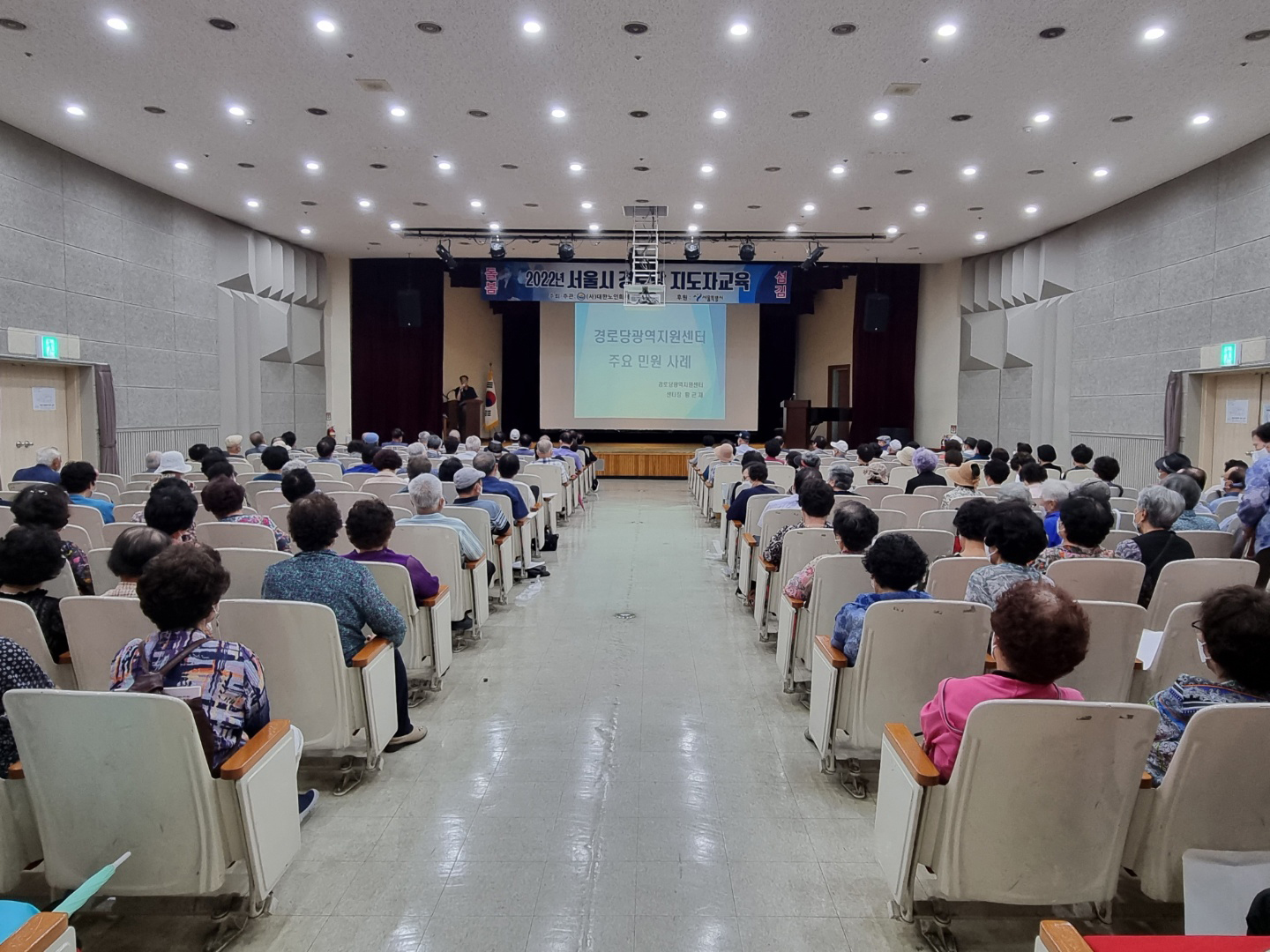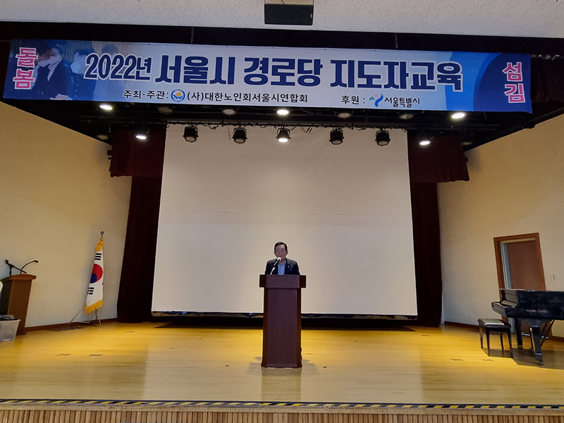 지난 8월 25일 송파여성문화회관에서 서울시연합회 주관으로 '2022년 서울시 경로당 지도자교육'을 실시했으며 송파구 174개 경로당회장과 총무 300여명이 참석했다. 1부에서는 송파구 윤병오지회장의 인사말과 서강석 송파구청장, 박경래의장의 격려사와 고광선 서울시연합회장의 인사말과 특강이 이어졌다.