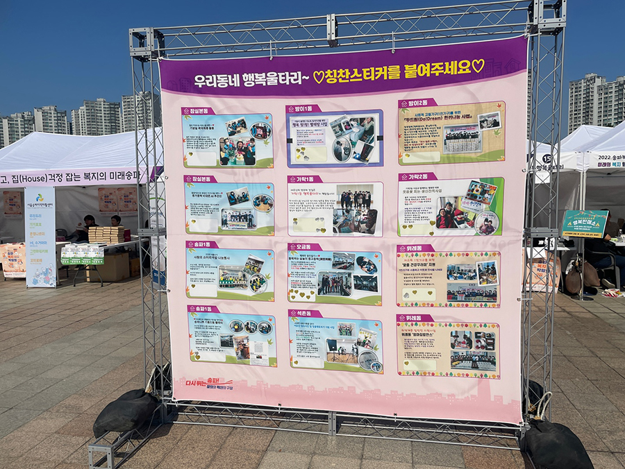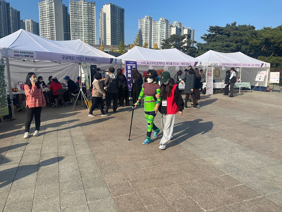 남녀노소 복지의 모든것을 즐겁게 체험할수 있는 2022년 송파복지박람회가 10월 29일(토) 12:00~17:00까지 '올림픽공원 평화의광장'에서 열렸다. 장애인인식개선을 위한 장애처험, 시각장애인 향기컨설팅, 반려로봇인형소개,어르신스마트기기교육, 노인체험센터 등 10개분야 30개부스가 운영되었다.