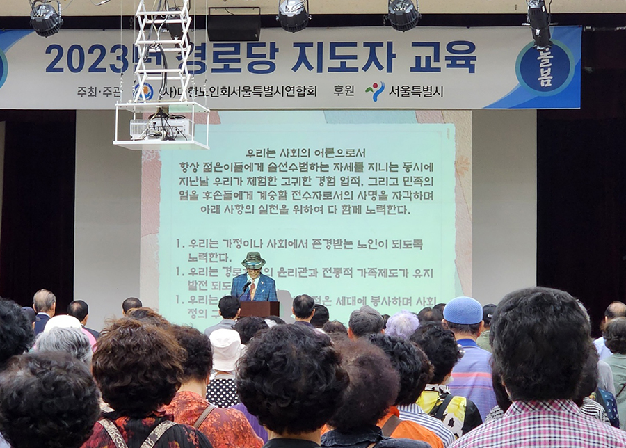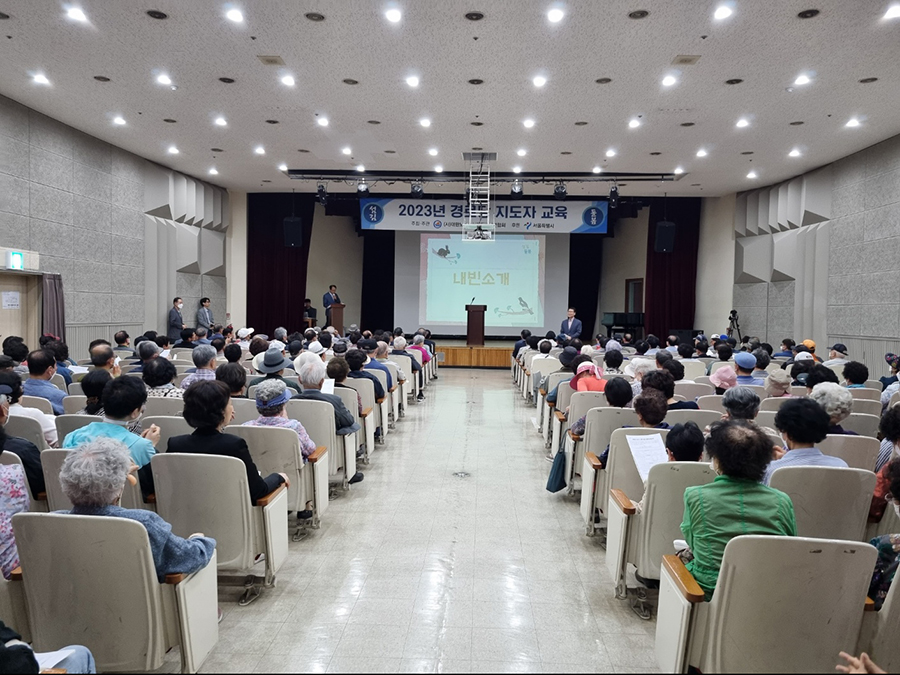 지난 5월 17일 송파여성문화회관 6층에서 서울시연합회 주관으로 '2023년 서울시 경로당 지도자교육'을 실시했으며, 송파구 177개 경로당회장과 총무 250여명이 참석했다. 교육은 ① 경로당 기능과 운영 ② 경로당 회계 교육 ③경로당 예절 및 노인학대 예방 교육 ④경로당 주요 민원사례교육들이 이어졌다.![]()