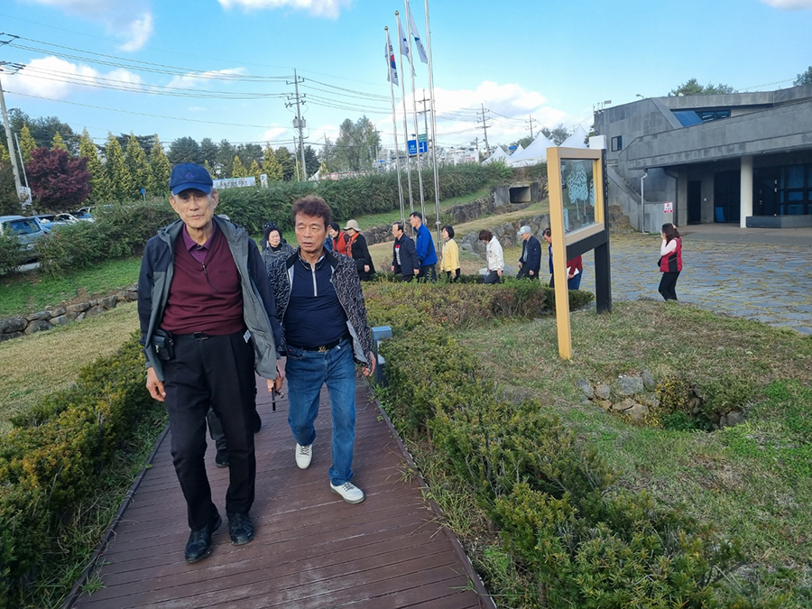 지난 2023년 10월 27일 송파지회 이사 20명은 경기도 연천으로 '2023년 이사회 추계 문화체험' 을 다녀왔다. 오전에는 임진강 댑싸리공원과 태풍전망대를 견학하고, 점식식사후 재인폭포 출렁다리와 전곡 선사박물관 국화꽃 축제에 참여했다.![]()