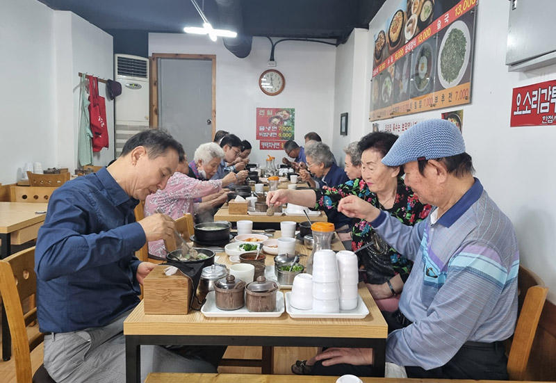 <교육후 식사중인 거여동 경로당 회장>