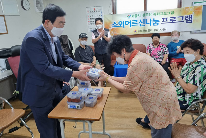 본지회는 지난 7월 22일 방이동 왕천 경로당에서 소외어르신 나눔프로그램 '반찬 나눔 사업'을 실시하였다.