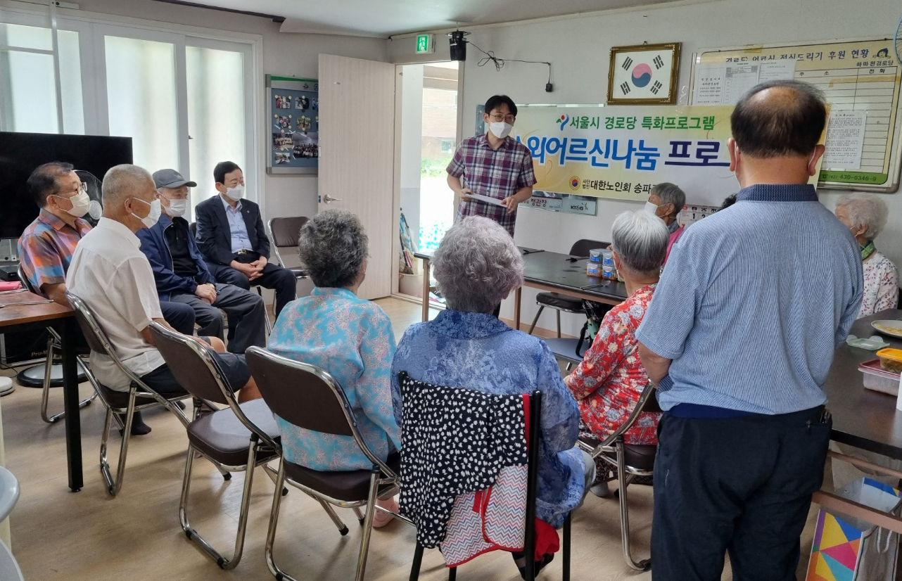 지난 8월 26일 마천동 '하마천 경로당(회장 김영배)에서 소외어르신 나눔프로그램 '반찬 나눔 사업'을 실시하였다.