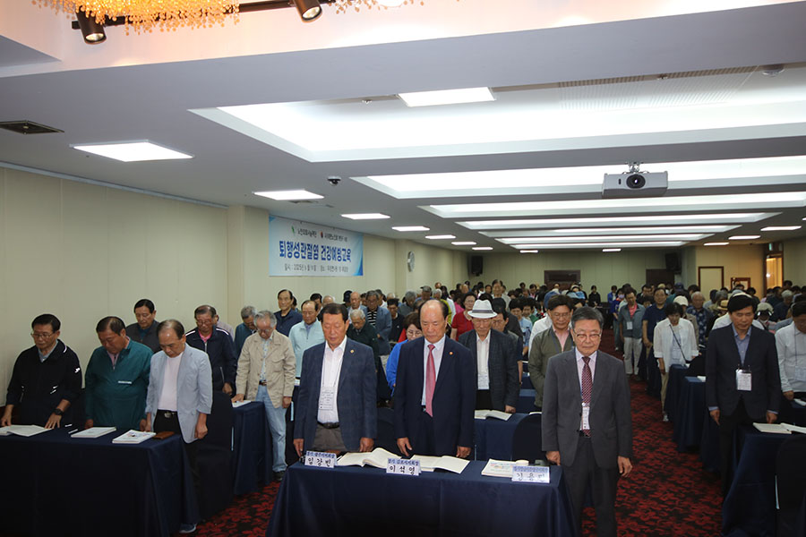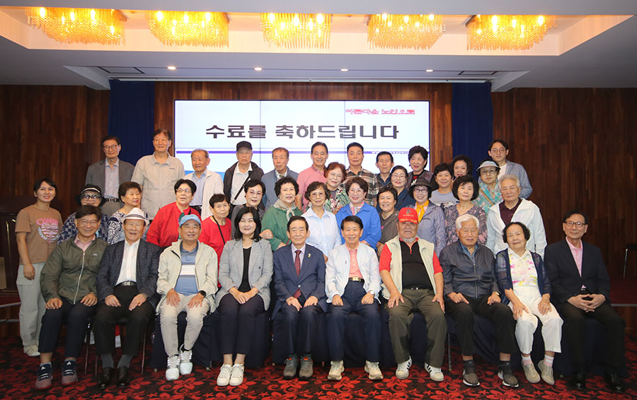지난 9월 18~19일 충북 충주 수안보 라마다호텔에서 송파구경로당 회장30명이 ' 2025년 노인지도자교육' 에 참석했다. 18일에는 관절염예방, 건강관리 레크리에이션 교육과 19일에는 건강체조, 리더십 수료식 기념촬영이 진행되었다.