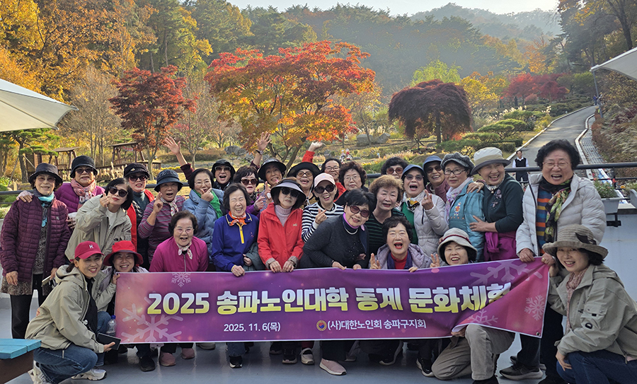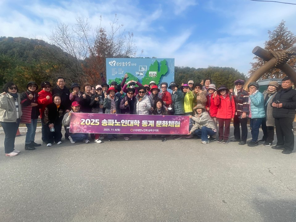 지난 11월 6 송파노인대학에서는 '2025년 송파노인대학 동계 문화체험'를 실시했다. 오전에는 강원도 원주 횡성댐 5구간을 걷고, 점심식사후, 동화마을휴양림을 견학했다. ![]()