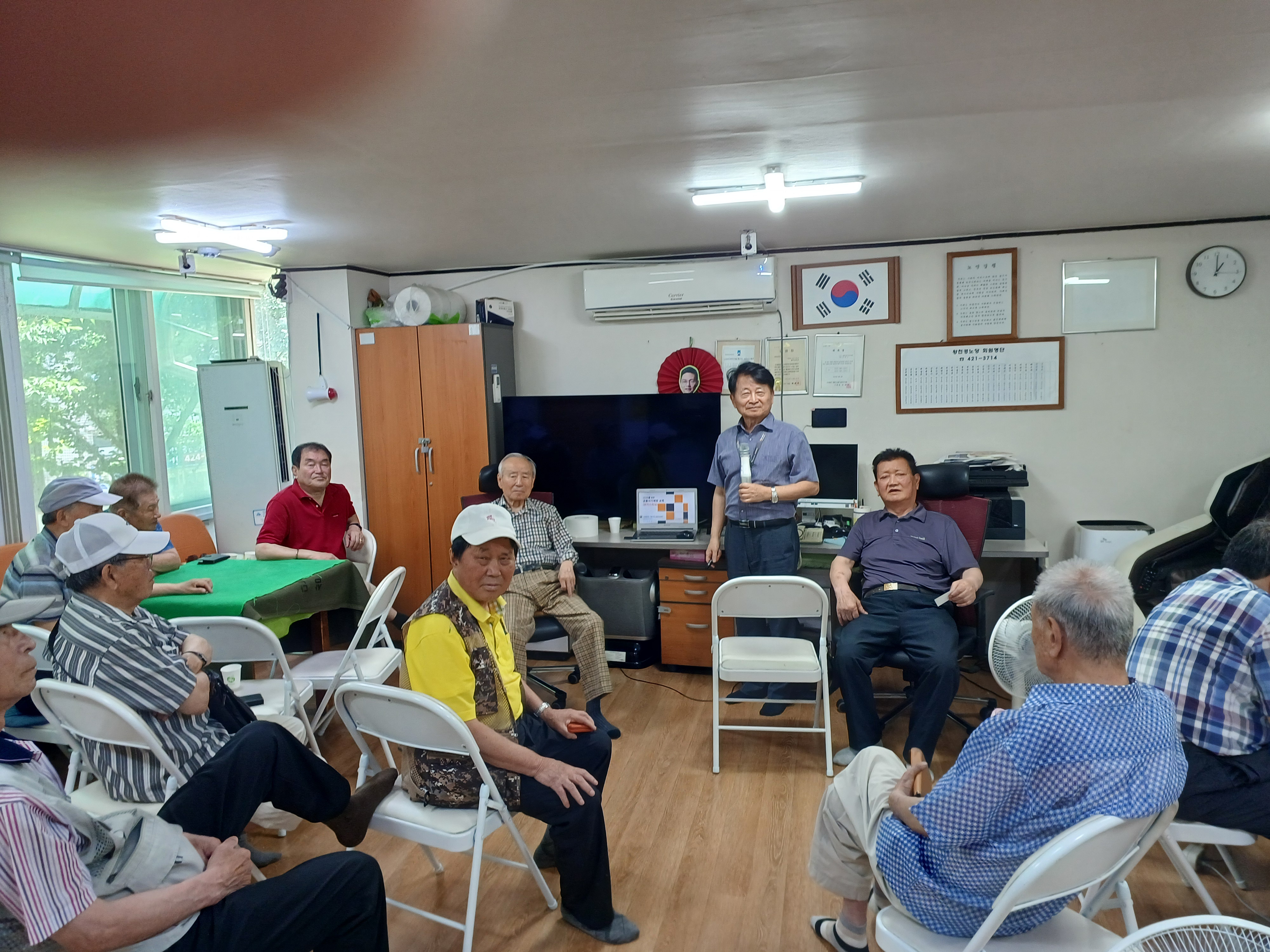 지난 7월 12일 왕천경로당(회장 박팔성)은 지역경제교육센터 김준모강사로부터 '보이스피싱교육'을 받고 있다.![]()