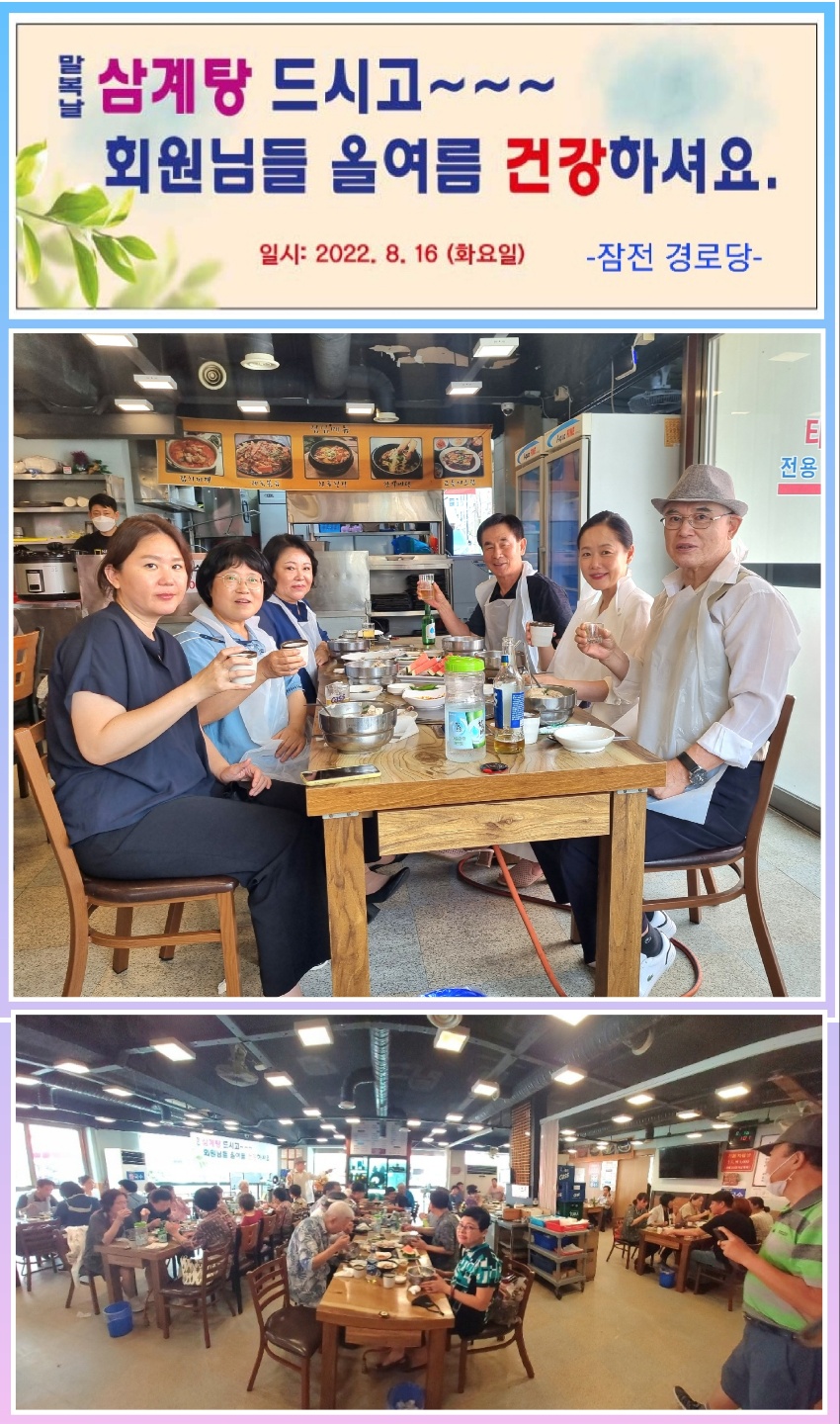 지난 8월 16일 잠실본동 잠전경로당(회장 이성완)에서는 말복을 맞아 무더위에 지친 경로당 어르신들에게 건강하게
