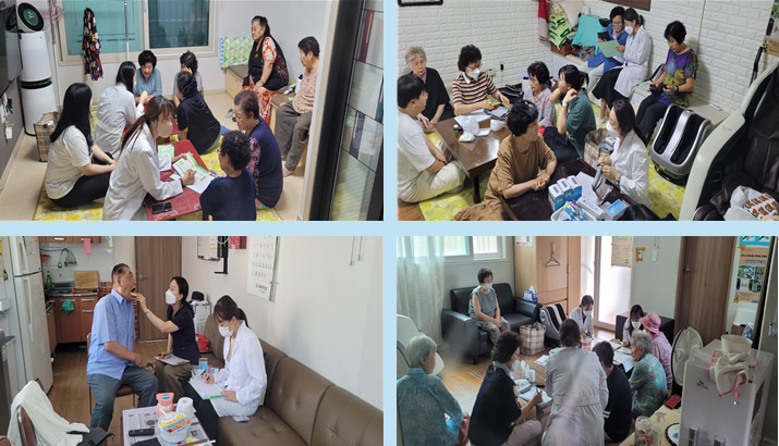교육내용으로는: ▪ 노인 구강건강 관리법 ▪ 입체조와 구강 근육 마사지 ▪ 혈압 및 식후 혈당측정(방문보건팀 협조) ▪ 만성질환 교육 및 상담 ▪ 만성질환 관리를 위한 영양상담, 교육 등을 실시하고 있다