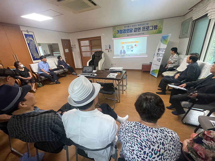 본지회는 지난 8월 24일 마천동 남천경로당에서 서울시 특화사업으로 개방형경로당 '광역강연프로그램(거점경로당)' 과 '건강 걷기프로그램'을 실시하였다. 마천동 18개소 경로당 회장이 한자리에 모여서 '2023년 회계 및 정산교육'과 ‘노인학대 예방 교육’ 건강걷기 대회에 참석하였다![]()
