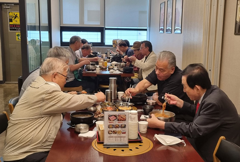 <교육후 식사중인 위례동 경로당 회장>