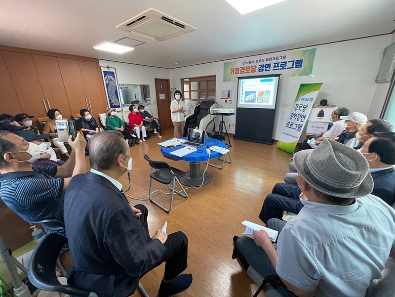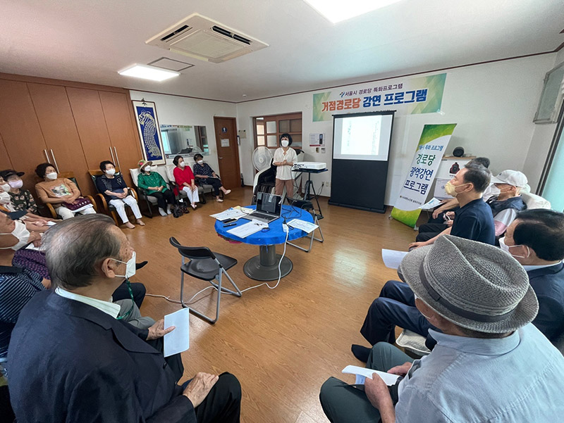 본지회는 지난 7월 19일 마천동 남천경로당에서 서울시 특화사업으로 개방형경로당 '광역강연프로그램(거점경로당)' 과 '건강 걷기프로그램'을 실시하였다. 마천동 18개소 경로당 회장이 한자리에 모여서 '2022년 회계 및 정산교육'과 건강걷기대회에 참석하였다