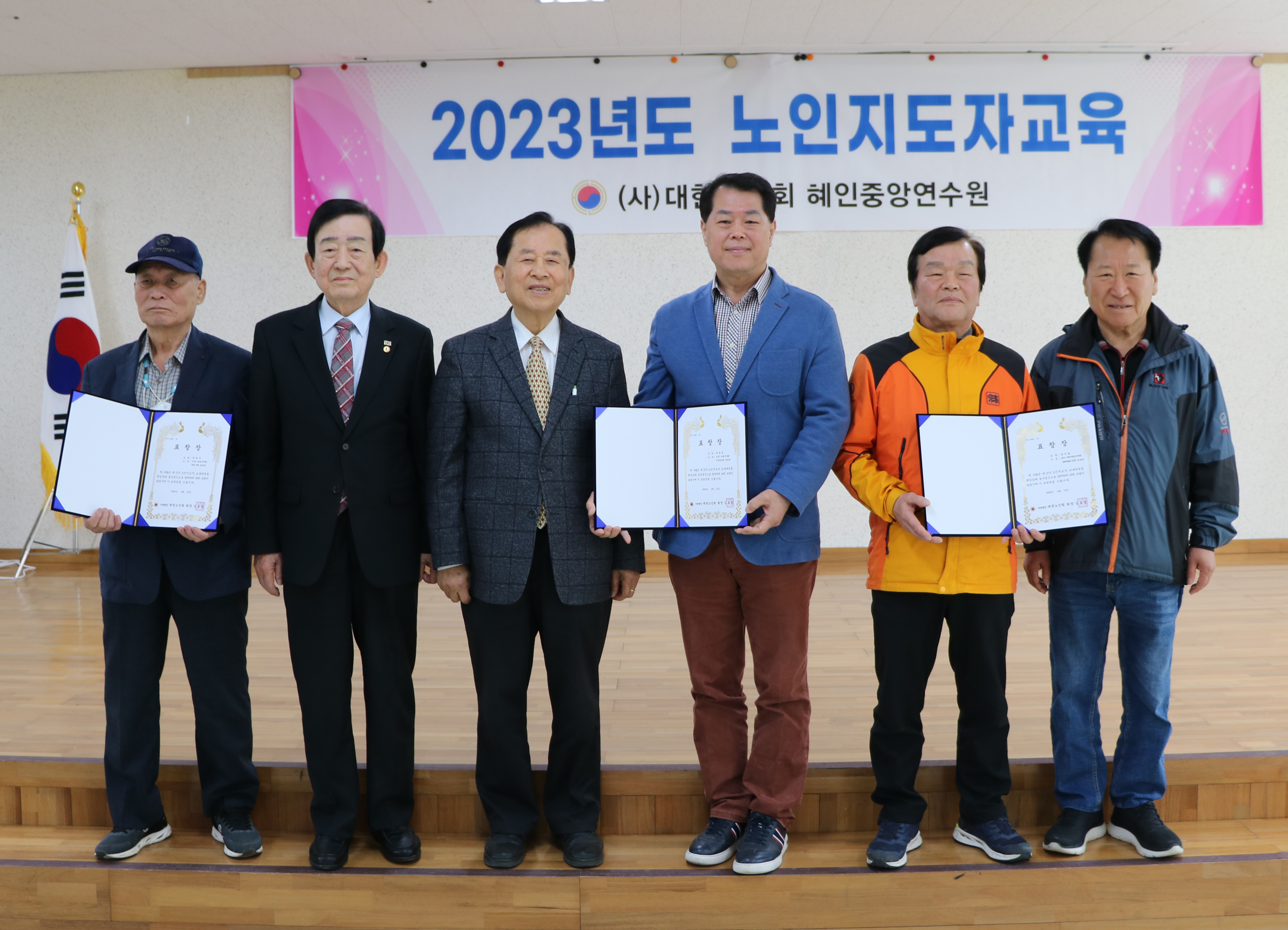 지난 4월 12~13일 전북 무주연수원에서 경로당 회장 30명이 ' 2023년 노인지도자교육' 에 참석했다. 12일에는 입교식 및 오리엔테이션, 인문학, 건강관리, 레크리에이션 교육과 13일에는 건강체조, 리더십, 수료식 및 기념촬영이 진행되었다.![]()
