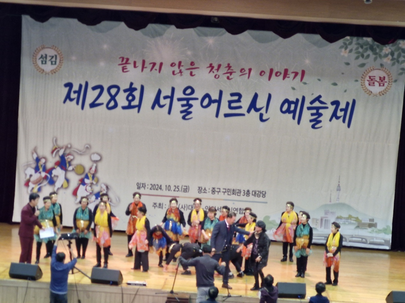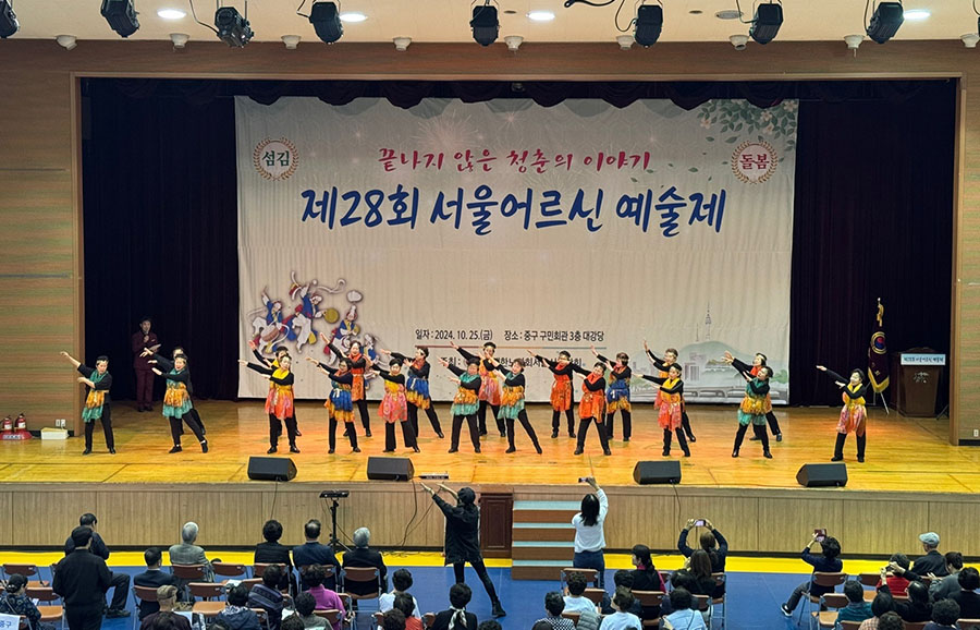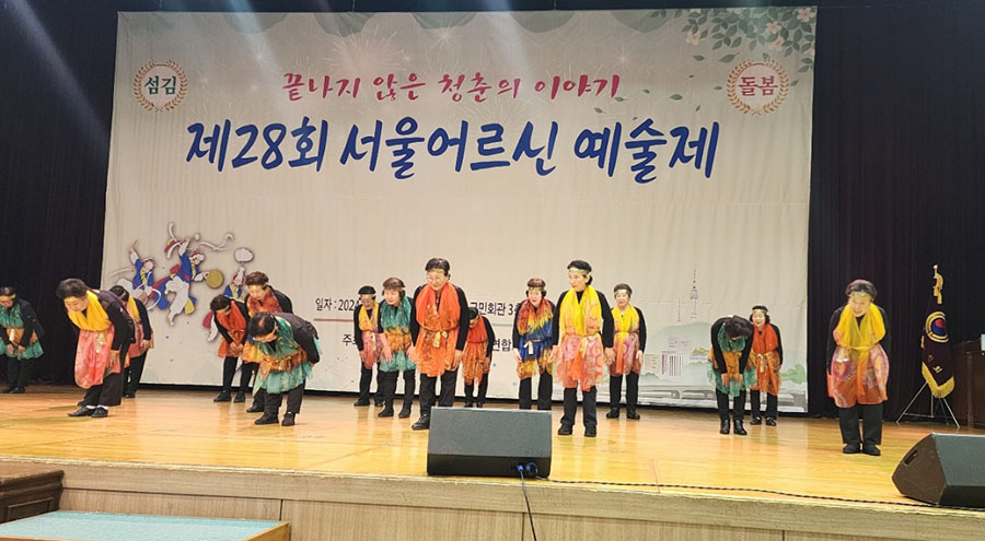 대한노인회 서울시연합회(회장 고광선)가 주최한 ‘제28회 서울어르신 예술제’가 지난 10월 25일 중구구민회관에서 개최되었다. 고광선 연합회장, 지회장, 노인대학장 등 500여명이 참석했으며, 본지회는 이정현의 '와'을 선보여, 아낌없는 박수를 받았다![]()