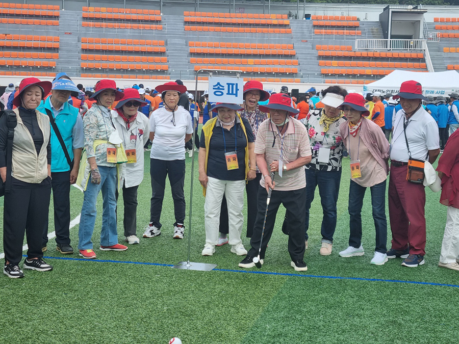 송파구지회는 공굴리기, 파크골프, 한궁, 애드벌룬 튕기기, 하늘높이 슛에 참석했다. 한궁대회에 참가한 벌말(회장 이상희) 경로당에서 준우승을 차지했다. ![]()