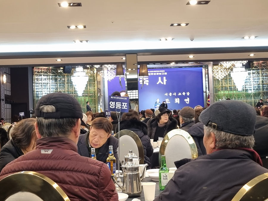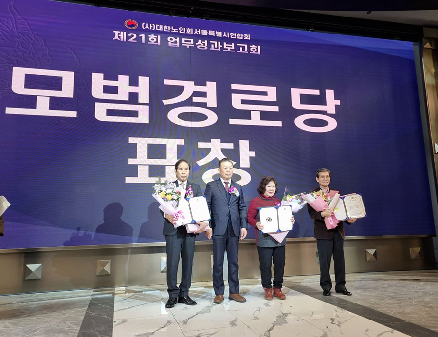 (사)대한노인회 서울연합회(회장 고광선)는 12월 22일 마포구 케이터틀 컨벤션홀에서 제21회 업무성과보고회를 개최했다. 이날 행사에는 오세훈 서울시장을 대신해 조미숙 서울시 복지기획관, 조희연 서울시교육감, 서울시의회 우형찬 부의장, 강석주 보건복지위원장, 대한노인회 김호일 중앙회장, 고광선 서울연합회장, 연합회 임원‧고문, 서울 지역 지회장, 노인대학장 등이 참석했다. ![]()
