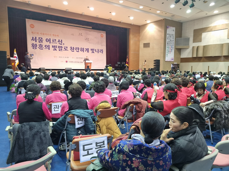 지난 11월 24(금) 중구구민회관 3층 대강당에서 '제27회 서울어르신 예술제'가 성황리에 개최되었다. 본지회는 기장갈매기노래와 무용을 선보이며 은상을 수상했다.![]()