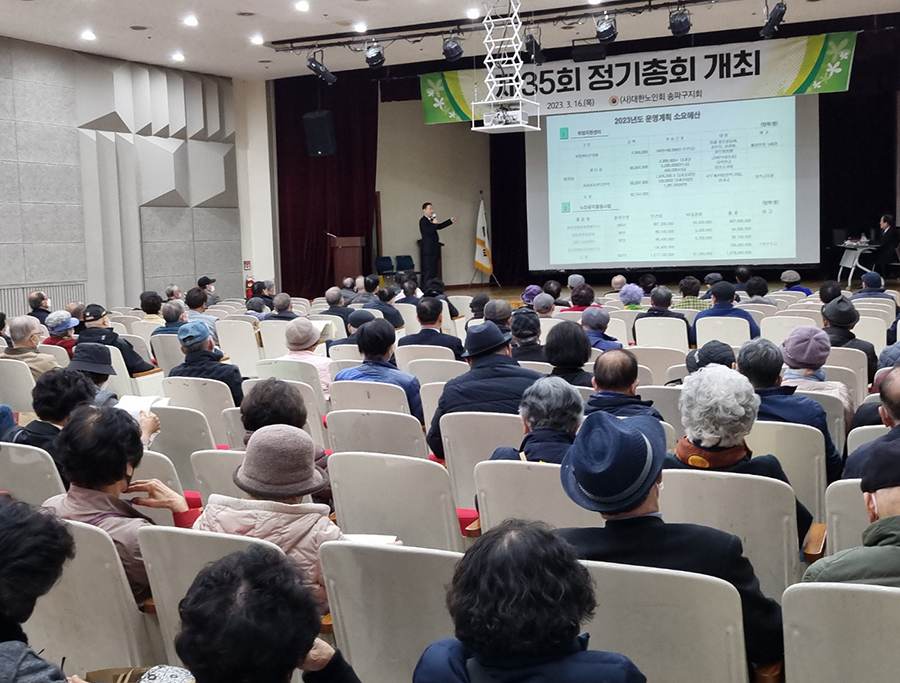 본 지회는 지난 3월 16일 송파여성문화회관 6층에서 '제35회 정기총회'를 개최했다. 파크하비오 박종기회장의 노인강령 낭독을 시작으로 윤병오지회장의 인사말과 박신규감사의 '2022년 회계감사보고'가 이어졌다.