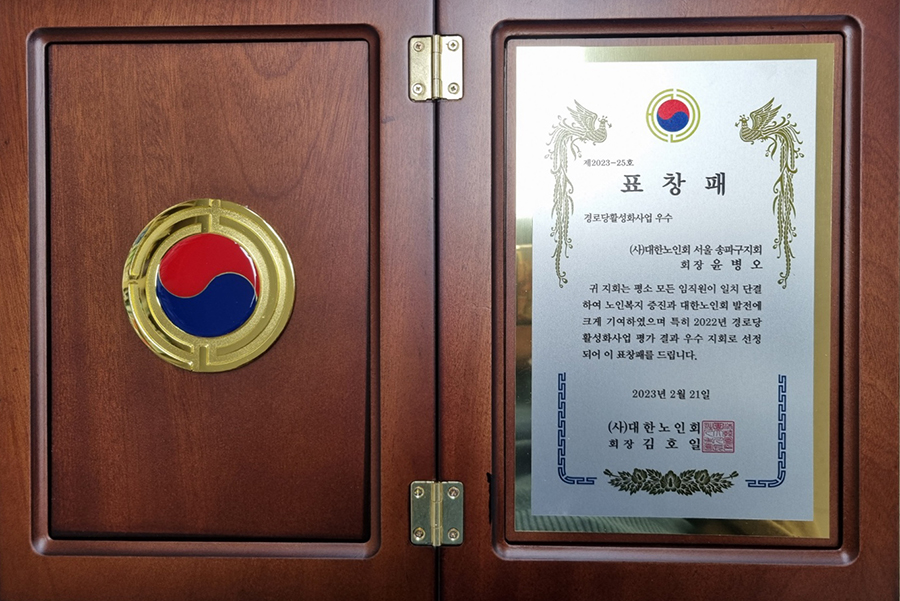 송파구지회, 2022년 경로당활성화사업 우수지회 수상