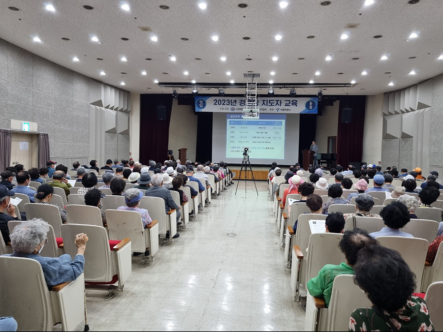 지난 5월 17일 송파여성문화회관 6층에서 서울시연합회 주관으로 '2023년 서울시 경로당 지도자교육'을 실시했으며, 송파구 177개 경로당회장과 총무 250여명이 참석했다. 교육은 ① 경로당 기능과 운영 ② 경로당 회계 교육 ③경로당 예절 및 노인학대 예방 교육 ④경로당 주요 민원사례교육들이 이어졌다.![]()