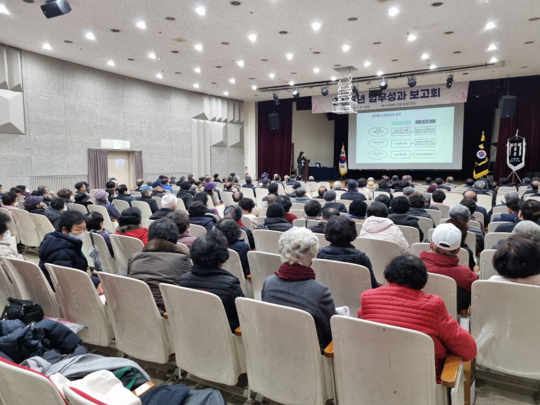 지난 12월 14(목) 본 지회는 경로당 회장 180명이 참석한 가운데, 송파여성문화회관 6층에서 '2023년 업무성과보고회'를 개최했다. '헬리오시티 시니어 하모니카 합주단'이 식전 축하공연을 시작으로 송파구지회상(우수경로당) 시상식을 거행했다. 또 윤병오지회장의 인사말과 남인순의원으 격려사가 이어졌으며, 총무부, 경로부, 취업지원센터의 각 부서별 업무보고가 이루어졌다.![]()