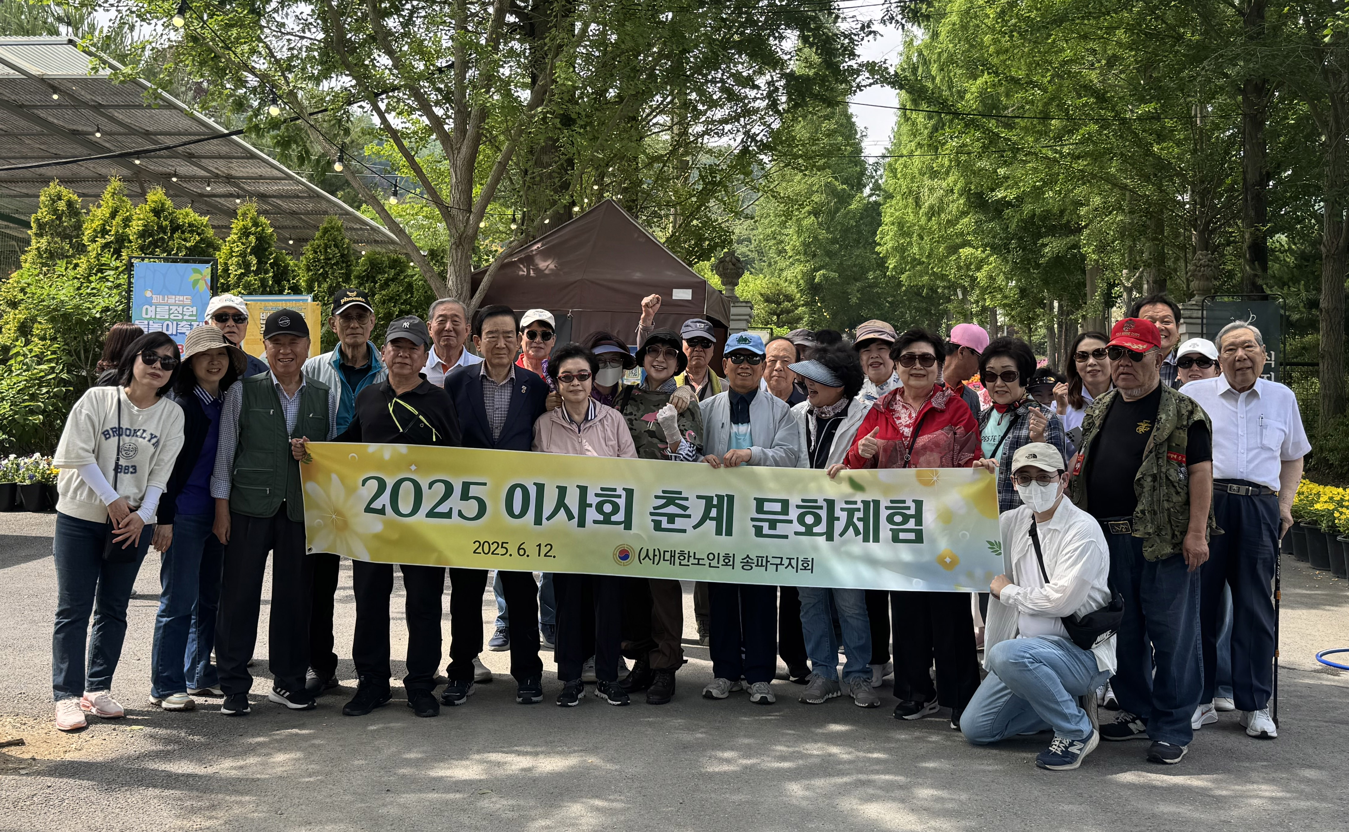 지난 2025년 6월 12일 송파지회 이사 20명은 충남 아산 피나클랜드 수목원으로 '2025년 이사회 춘계 문화체험' 을 다녀왔다. 오전에는 피나클랜드 수목원을 구경하고 점심식사후 오후에는 한진포구, 해변데크길 산책했다
