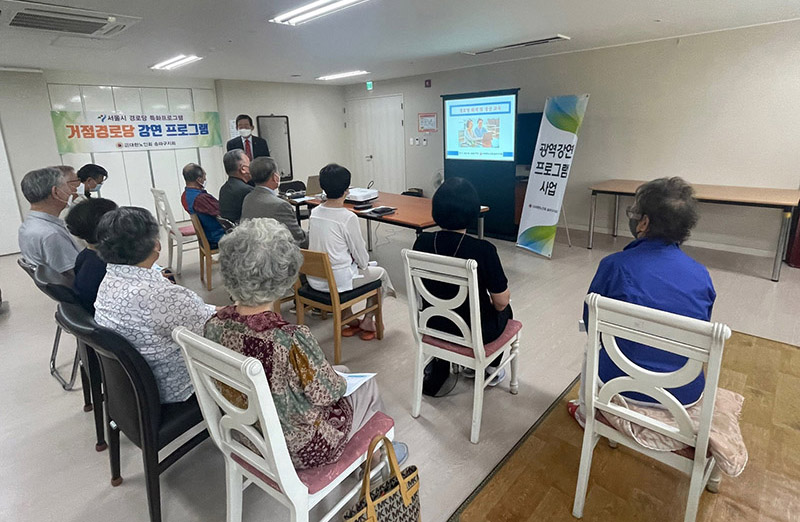 지난 9월 20일 위례동 '위례포레샤인 경로당(회장 현무경)'에서 서울시 특화사업으로 개방형경로당 '광역 강연프로그램(거점경로당)' 과 '건강 걷기 프로그램'을 실시하였다. 위례동 10개 경로당 회장이 한자리에 모여서 '2022년 회계 및 정산교육'과 건강걷기대회에 참석하였다.![]()