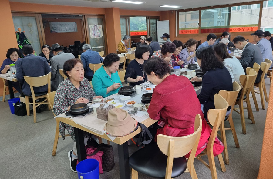 <교육후 식사중인 위례동 경로당 회장>