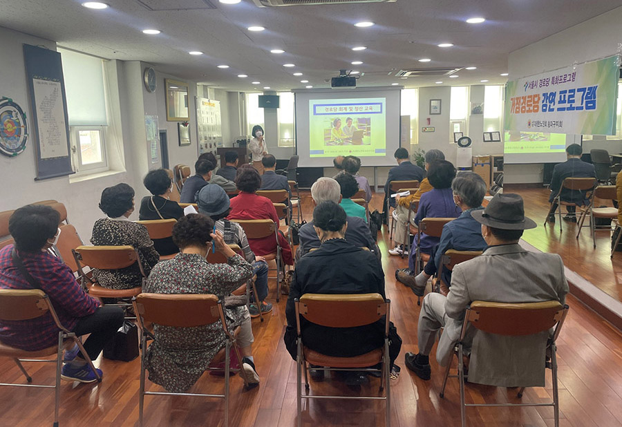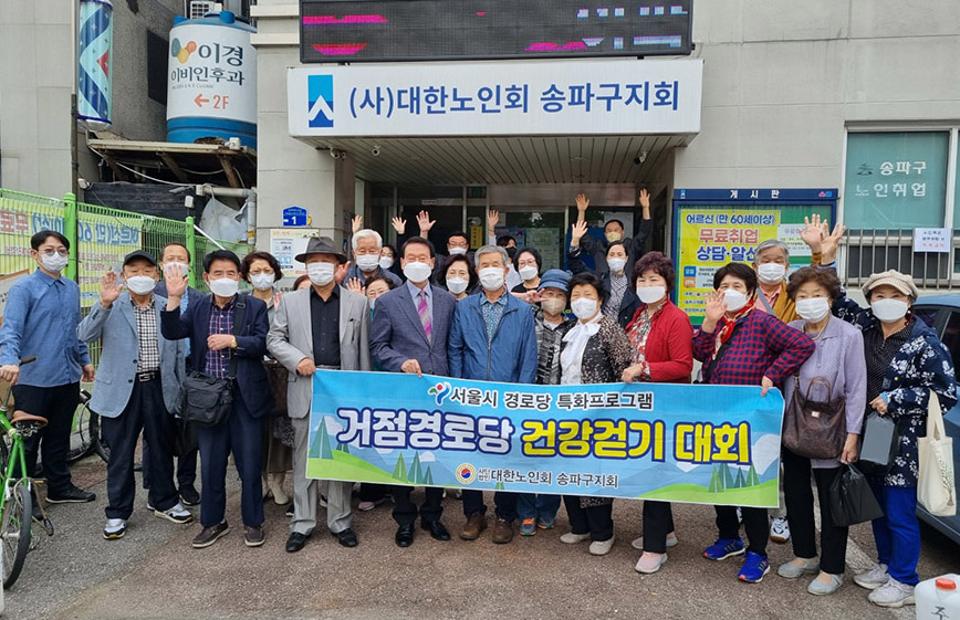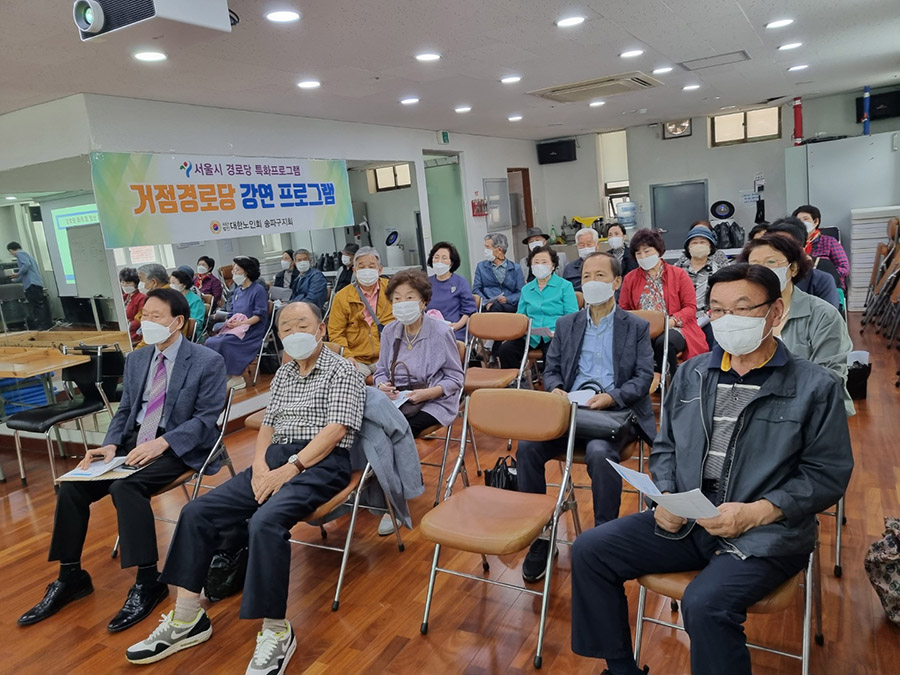 지난 9월 28일 본지회 3층에서 송파동, 석촌동, 삼전동, 가락동ㆍ문정동ㆍ장지동일부 경로당회장들이 모여서 서울시 특화사업으로 개방형경로당 '광역 강연프로그램(거점경로당)' 과 '건강 걷기 프로그램'을 실시하였다. 30명 경로당 회장이 한자리에 모여서 '2022년 회계 및 정산교육'과 건강걷기대회에 참석하였다.