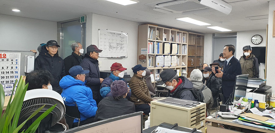 지난 12월 20일(수) 오전 11시 지회 2층 회의실에서 환경공해방지봉사대와 기초질서봉사대 24명이 참석한 가운데 간담회가 개최되었다![]()