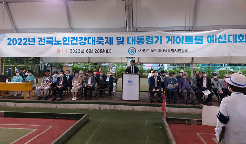 지난 6월 28일 도봉구 창동 게이트볼 경기장에서 '전국노인건강대축제 대통령기 게이트볼 예선대회'가 열렸다.