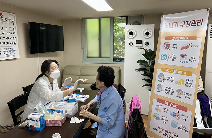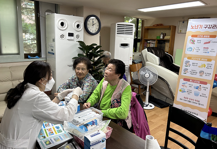 지난 9월 19 송파보건지소에서는 거여6단지경로당을 방문하여 구강검진을 비롯하여, 혈압측정, 당뇨혈당측정, 건강상담등을 실시하였다.![]()